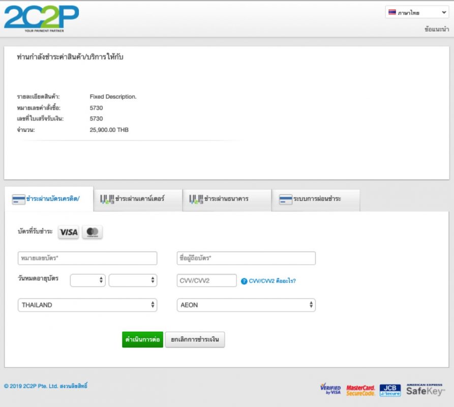 กดปุ่ม “Pay Via 2c2p” ซึ่งก็คือผู้ให้บริการรับชำระเงิน