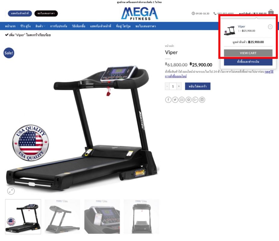 เมื่อกดปุ่ม หยิบใส่ตะกร้าแล้ว จะมีหน้าต่างขึ้นมา ให้กดปุ่ม “View Cart”