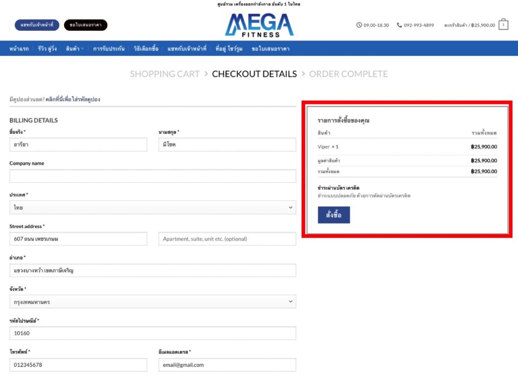 เมื่อกรอกรายละเอียดครบแล้วให้กดปุ่ม “สั่งซื้อ”